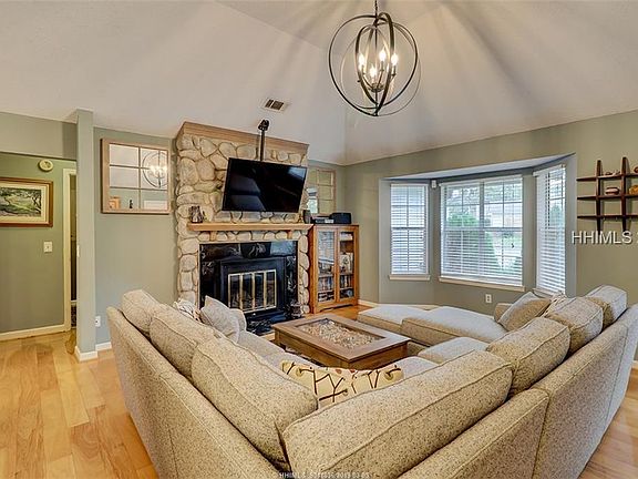See 3D VT link. This is the one you've been waiting for in Bluffton! Move-in ready 3BR + three-season room home on almost 4/10ths of an acre just 8 minutes from Old Town. Wonderful floor plan offers great room w/vaulted ceilings, wood burning fireplace, comfortable kitchen w/vaulted ceilings & 2-car garage. Custom Shiplap trim work on the ceiling of Master Bedroom and Guest Room. Large lot backs up to trees & lagoon. Large brick patio in back provides plenty of outdoor living space. Annual POA Fee of just $180.00/year. Multiple bay windows make this charming home light & bright! This is a must see property in this price point!