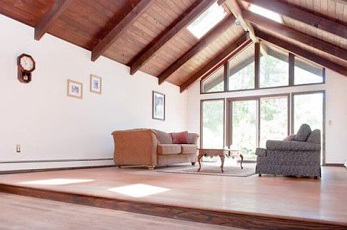 This 4 bedroom 3 full bathroom contemporary ranch is situated on 2.06 private and level park-like acres in a lovely neighborhood. The home boasts a grand family room with soaring ceilings and floor to ceiling windows/sliders to the rear and expansive deck that over looks the well manicured backyard. The kitchen with center island and eat in area is flooded by natural light much of the day and opens to another living/family room area with fireplace. The formal dining room located on the other side of the kitchen is perfect for entertaining family and friends. A home office with separate entrance is perfect for any stay at home professional. The sleeping quarters occupy the opposite wing of the home. The generously sized master suite with full bath and large walk-in closet is the perfect escape at the end of the day. Two other bedrooms with large closets await your visit. The lower level offers several functional options. Here we find the large 4th bedroom, full bath, playroom, den and galley kitchen. Whether it's returning college grads, the in-law or long term guests this lower level offers several flexible options. Outside we find a well manicured property. The front features a circular driveway, mature trees and a freshly graveled driveway. The backyard is a level space perfect for BBQ's, sports and other entertainment. Freshly stained, the deck covers the entire rear expanse of the home with lots of space for friends and family. This home is a true value for the discerning buyer seeking a lifestyle purchase with the functionality of a family home.