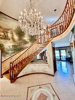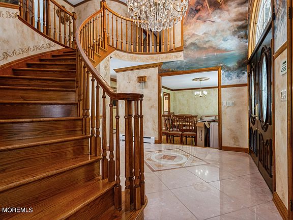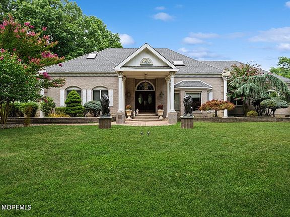 Stunning French Provincial home in Fox Hill Estates in beautiful Millstone Township. This breathtaking 5 bedroom, 5 bath home sits on a lush 5 acres of land. The first floor features a chef's kitchen with a 6 burner stovetop, Sub Zero paneled refrigerator, S/S double oven, S/S dishwasher, S/S microwave, granite countertops and water filtration system. The eat in kitchen is comprised of a large pantry, center island, and French doors that open up to the patio. Off of the kitchen, you will find the dining room, formal living room, and large family room with wood burning fireplace, skylights, and vaulted ceilings showcasing decorative moldings and either hardwood flooring or tile throughout. First floor includes a large bedroom which includes a sitting room, private ensuite, and jacuzzi/hot tub. A laundry room and a full bath complete the first floor. From the spectacular 2-story entry foyer, head up the spectacular rounded staircase to the second floor. Once on the second floor, make your way through the double doors to the primary suite with private ensuite. This large bedroom includes several walk in cedar closets and private balcony overlooking your backyard oasis. The second floor has an additional 3 bedrooms, all of which have spacious closets and gorgeous hard wood floors. The second floor includes a full bathroom in the hallway. The finished basement, equipped with radiant heating, is a haven for endless entertainment, with a full-service kitchen, plenty of storage space, and a full bathroom. This space is perfect for hosting parties or enjoying quality family time. This home features a 3 car garage with side entry and a paved, horseshoe driveway. In the backyard, you are greeted by nature's beauty. An expansive stretch of lush, green grass, mature trees, and colorful flowers. A newer, custom Cambridge paver patio and large, inground, salt water, heated swimming pool with diving board and hot tub will surely be the backdrop of many joyful days spent in this home. The backyard is complete with a cabana, two sheds, as well as a large pole barn for all of your storage needs. With its convenient location in Millstone Township, this home offers easy access to shopping, dining, and major highways. The love and pride of ownership are shown throughout this home with meticulous attention to detail. Whether you're seeking a peaceful retreat or a place to entertain family and friends, this gorgeous home is the perfect choice. Get ready to make beautiful memories in your dream home!