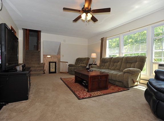 Spacious tri-level with 3 to 5 bedrooms and 2 full baths. Gas fireplace in living room open to dining room and kitchen. 2 fireplaces. Newer windows, vinyl siding and roof. Great floor plan for multiple uses. Fenced in corner lot. Quiet subdivision. Hardwood under carpets on first floor. Very versatile floor plan. Well maintained home with neutral decor.