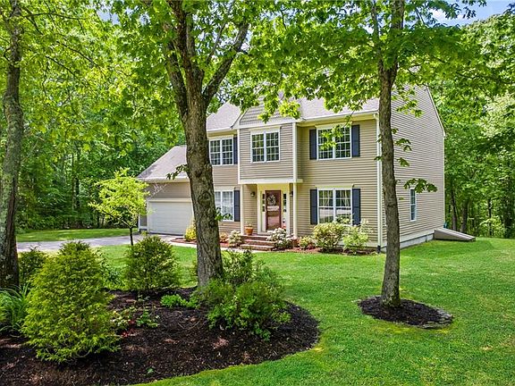 Wonderful and bright 3 bed 2.5 bath colonial in Richmond Hills, set on a level 1.97 acre site. Located on a quiet tree lined cul-de sac with a private back yard. Discover a formal dining room with hardwoods, living room with fireplace, eat-in kitchen with granite, center island and breakfast nook. There is also a den/home office and a laundry room on the 1st level complete with front load washer/dryer. Stay cool with central air and enjoy hardwood floors. The exterior offers a sprinkler system, fire pit and deck. This is country living but you are not isolated. Take a spin to the area beaches, ponds, golf courses and shopping. You are only 4 miles from RTE 95, so a visit to the casinos is a very easy trip. This home is located in the award winning Chariho School District.