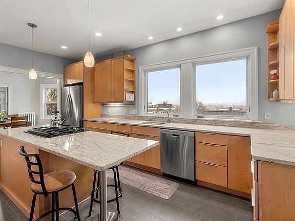 This is the one you've been waiting for! Beautiful and sun drenched 3 bed/1 bath condo on the Brookline/Brighton line with spectacular views of the city. The perfect blend of old world charm and new updates with its fabulous open floor plan, endless windows, hardwood floors and high ceilings throughout. Living room flows into a formal dining space and then into the chef's kitchen with granite countertops, stainless steel appliances, an oversized center island made for entertaining and plentiful built-in pantry space. Spacious main bedroom has a large walk-in closet and a Juliet balcony, second bedroom and a third bedroom with a wonderful balcony to enjoy those city views. Additional space in entry way serves as a mini-mud room. Storage included in basement along with laundry facilities and assigned parking for one car off-street. Unbeatable Brighton location right on the Brookline line and convenient to the Green Line, Coolidge Corner, shops, restaurants & much more!