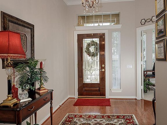Adorable one story home in the active Windsor Hills 55+ community! Located on a corner lot, this home features a two car attached garage, neutral paint throughout, crown moulding, built-ins and abundant large windows providing beautiful natural light. The open concept kitchen with breakfast bar, Bosch dishwasher, and spacious pantry overlooks the breakfast room and den with gas log fireplace. Formal dining (or flex space). Owner's retreat and guest bedroom with full bath; study with French doors could be a 3rd bedroom; large, fenced yard features a covered patio with stamped concrete surrounded by mature shade trees and tons of privacy. Windsor Hills amenities include miles of walking trails, a clubhouse with fitness center, billiards room, arts and crafts center, pool and spa.