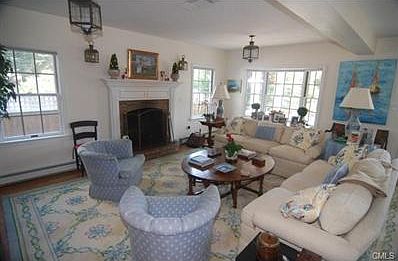 Charming New England shore house around the corner from South Beach on Bell Island. This home has a master bedroom and bath on the 1st. floor and 3 bedrooms and bath on the 2nd. floor plus a family sitting area. The kitchen has just been redone and the large living room has a wood burning fireplace. Both porches on the front overlook Clarke Park. Don't miss this opportunity to live on Bell Island near the beach. A boat mooring may be placed off either beach w/application thru Harbor Master. Bell Island Dues: $800 yr., Sewer Fee: $285 yr. First Floor Elevation is 9' 3".