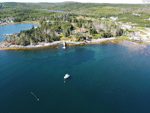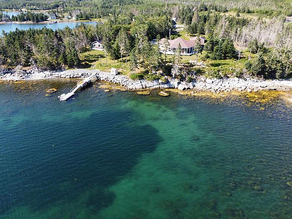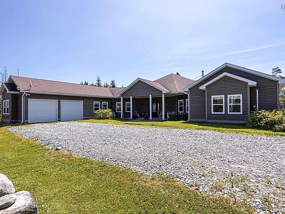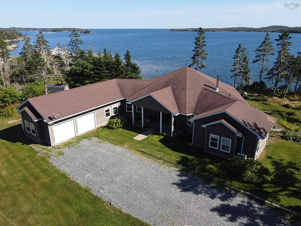 Gorgeous and completely unique oceanfront property in Popes Harbour on the Eastern Shore of Nova Scotia. This listing includes four properties: the main house, a guest house and two vacant parcels of land. The 12 years young one level house on slab is something you do not see everyday with gleaming epoxy concrete floors throughout with in-floor designs in many rooms and a hexagonal shaped great room that includes the spacious front entry, open kitchen, dining and living room with wooden vaulted ceiling and a pellet stove. This space has many south facing windows to showcase the ocean beyond and provide passive solar energy; enjoy indoor and outdoor entertaining with wired in speakers and access the covered wrap around deck and hot tub from two entry doors. The kitchen features tons of cabinet space, quartz countertops, a large pantry and island breakfast bar. Down the hall on one side of the home you will find the laundry room and a very large primary bedroom suite with walk-in closet, heat pump and double doors to the 4-piece bathroom with soaker tub. On the other end are two good sized bedrooms (one with a built-in Murphy bed), a 3-piece bathroom, family room and the attached single car garage and utility room. Walk around the property and discover multiple sheds, two greenhouses, a 24x24 detached garage (not wired), stairs to the wharf and floating dock and a 22x24 guest house. The guest house was renovated in 2019 and is situated on a slab foundation, and features a metal roof, open living, dining and kitchen, two bedrooms and a 3-piece bathroom and has its own well and septic. This property has it all; a beautiful oceanside one level home, a guest house perfect for rental income, extra land for privacy, many outbuildings and two garages, and a wharf to launch from and explore the 100 Wild Islands by boat or kayak and their pristine sandy beaches. Book your viewing today and make your ocean living dream a reality!