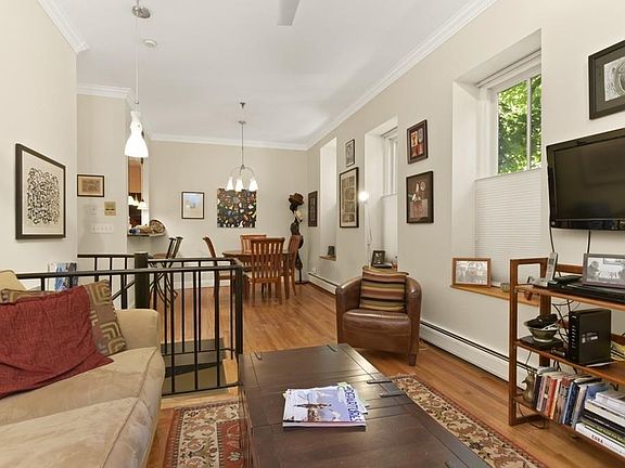 Exceptional value in the South End! Two bedroom, one and a half bathroom parlor/garden duplex on adorable tree-lined street. The main living level features an open living/dining area with hardwood floors, ten foot ceilings and four enormous west facing windows offering beautiful natural light. Fully applianced kitchen with breakfast counter, granite countertops and stainless steel appliances. A half bath and a large California Closet finish out this floor. On the lower level there are two equal sized bedrooms and a full, renovated bathroom with custom tile work and walk in glass shower. Professionally managed, pet friendly building with common laundry, additional storage, small common patio and many recent updates including Anderson windows (2011), new boiler and new water heater. Perfectly located steps from two dog-friendly parks, fabulous shops + restaurants, the MBTA Silverline, and is very convenient to both I-93 and I-90.