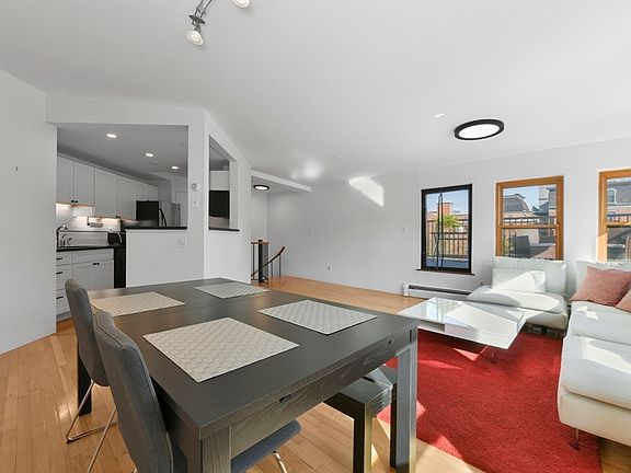 Enjoy city living in the charming South End without sacrificing space or amenities. Located in the historic Pray Brothers Carriage House elevator building in a stunning brownstone neighborhood, this two-level penthouse has freshly painted & polished hardwood floors throughout and a recently renovated kitchen, bathrooms, and a private roof deck. The first floor contains two bedrooms and a bathroom, with an intriguing winding staircase leading upstairs. The second floor features an open-concept living room with large windows, a kitchen, and a half-bathroom. Step out of the living room to enjoy amazing panoramic views of Boston from your spacious new roof deck. The kitchen features leathered granite countertops, stainless steel appliances, subway tile, and a breakfast bar. Close to public transportation and walking distance to everything the south end offers—renowned restaurants, theater, shopping, cafes, and the SOWA art district.