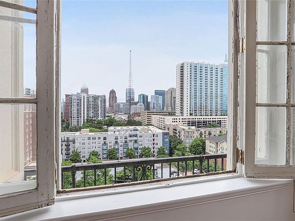 RARE OPPORTUNITY to own a CORNER penthouse at the historic Biltmore. No two penthouses are alike. From the moment you drive into the courtyard with its soaring Corinthian columns, you feel the history, grandeur, and charm of this once prestigious hotel, now on the National Registry of Historic Places. Walk into this freshly painted condo with 7ft Palladian windows, showcasing the dramatic Midtown Atlanta skyline. Gleaming hardwoods spread across the main and top floors. Skylights on the 2nd floor let natural light spill into both the room and en suite. The top floor observatory boasts panoramic views and a private balcony. Perfect for a 2nd bedroom or home office with full bathroom. Revel in all the conveniences of living in Midtown. This unit is within walking distance of Piedmont Park, MARTA, Fox Theatre, dozens of restaurants and nightlife, and located across from GA Tech. Quick access to I-75/85. The HOA covers internet, hot water, and cable. Currently under the rent cap! Welcome home!