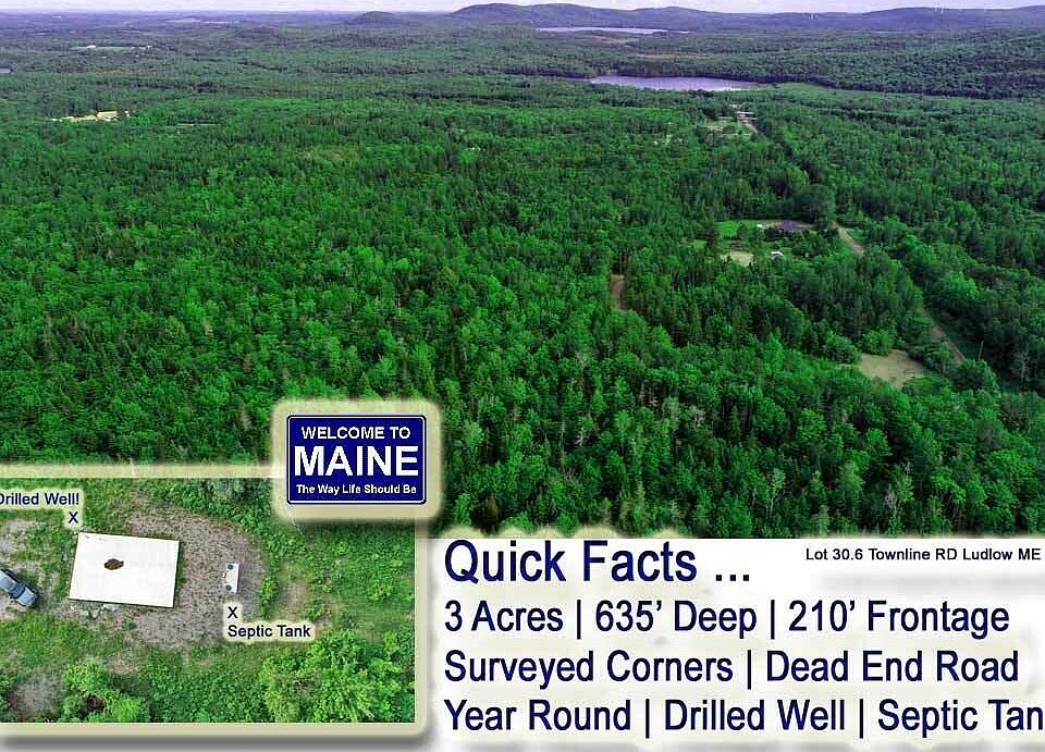 Land In Maine For Cheap Vacation Getaways! Surveyed 3 Acres On Dead End Year Round Plowed Road! Concrete 34'x24' Foundation Slab. Drilled Well, Concrete Septic Tank! Video. Looking For House Site In Country? Want To Be Near Lakes? To Maybe Homestead And Build A Home? Extra 30 Acres Available. But 3 Acres With Driveway, So So Much Started To Help Your Building Construction. Here's A New Maine Land Listing In Ludlow ME! Questions? Reach Out! Level To Rolling Land Connected To Rec Trails, Near Lakes, Handy To Shopping But Totally Private! Hurry! Low Cost Maine Land Listings Especially Don't Linger On The Real Estate Market.