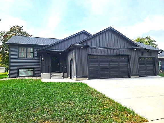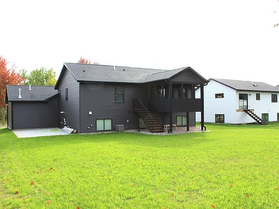 Home only a year old, home offers 4 bedrooms, 3 bathrooms, two full baths, with master bathroom being at 3/4 bath, Master bedroom offers shiplap on accent wall and walk in closet, Kitchen has custom cabinets with large center island and stainless steel appliances, upstairs living room has vaulted ceilings and shiplap fireplace with electric fireplace, off the kitchen there is a covered deck with ceiling fan, backyard also offers additional cement pad that could be used as a basketball court or second sitting area. In the basement family room it offers a large wet bar for entertaining. 840 SQFT heated insulated and finished garage. Concrete curbing around exterior of house with decorative rock. Paneled doors throughout, and much more. MUST SEE HOME!