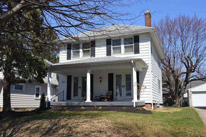This spectacular front porch welcomes you to a lovely three bedroom one and half bathroom home. Beautiful hardwood floors throughout. Large remodeled kitchen and large eat in space. First floor half bath has been remodeled. Three nice sized bedrooms upstairs. Full bath upstairs is very spacious with jack and jill sinks. 2 car detached garage and luscious yard. Welcome home!