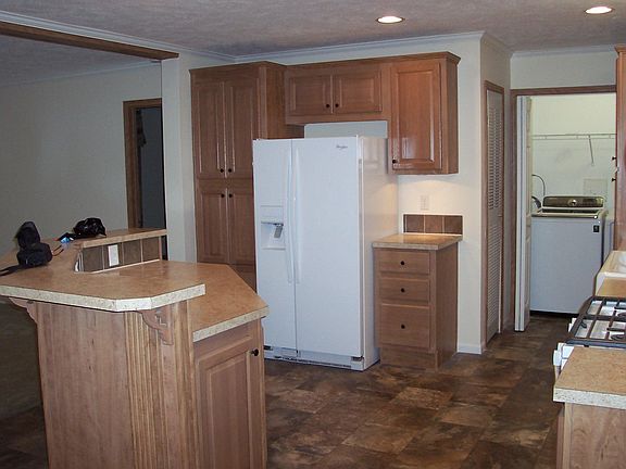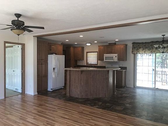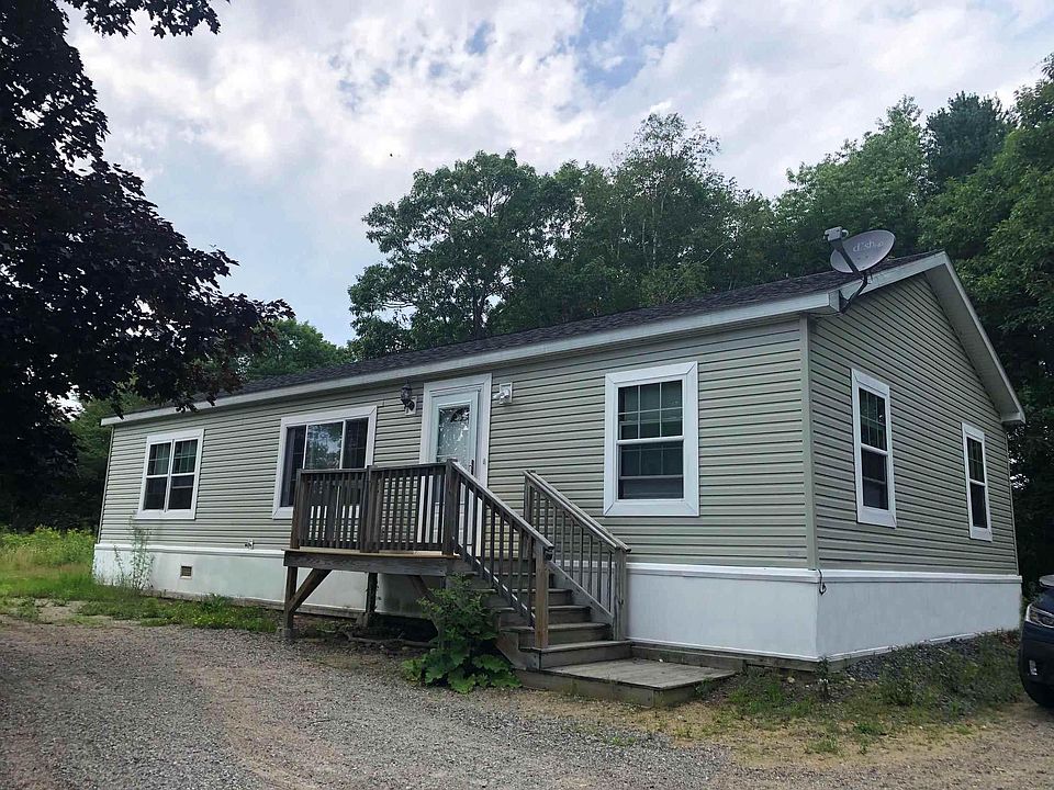Like new 2014 manufactured home on its own land! Open kitchen, dining and living room. Kitchen has a center island, plentiful cabinetry and a convenient laundry area. Two bedrooms and one bath on one end. A spacious primary bedroom, walk-in closet, a bath with double sinks and a huge shower on the other end. Grill off of the back deck that overlooks the woods. Storage shed for your outdoor storage needs. Why pay for park rent fees? Traditional financing available.
