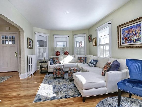 Spacious and Gracious describes this move in ready home. This 3 story home is situated on a corner lot and just minutes to commuter rail + Centre Street that has everything you would possibly need in walking distance! High ceilings, bright and airy, hardwood maple floors on 1st + 2nd floors. High end kitchen with gorgeous white cabinetry, marble back splash, quartz counter-tops + SS appliances with easy access to yard. 4 big bedrooms on 2nd level and updated bath, newly finished 3rd floor suite with two rooms and additional full bath. Enclosed front 4 season porch is a bonus space and offers many uses. Gas heat, updated electric, large unfinished basement with access to fully enclosed yard (small lot but well laid out for privacy with lovely landscaping), 2 car detached garage with new doors. Home had been meticulously maintained and is a must see! Please come and visit this very special home!!!