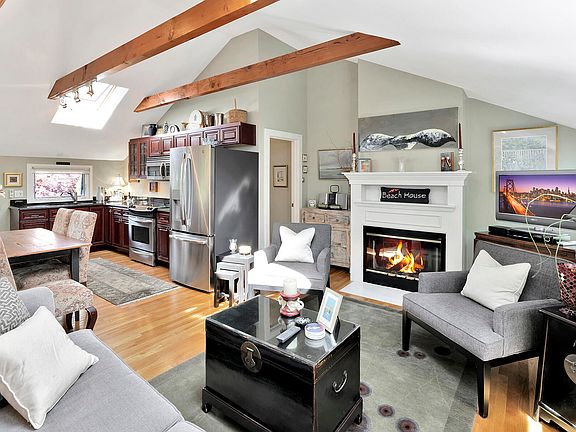 There's a lot to love about this home centrally located in Provincetown. Offering 3 levels of living space, this 2 bedroom / 2.5 bath condominium is tucked away in a lovely private location, but yet, is just a few minutes to the heart of downtown. You will find 2 nicely sized bedrooms on the entry floor with a tub bath between them. The 1st bedroom has great natural lighting with 2 windows at the front of the home. The primary bedroom is at the back with a wonderful enclosed porch attached. This will be one of your favorite spots in the house! Surrounded by windows it's a great place to relax, starting your day with morning coffee or ending it with an evening cocktail. The upper floor, has a tree house feel with vaulted ceilings, skylight, and lots of windows to enjoy the surrounding greenery. An open floor plan includes an elegant kitchen featuring mahogany cabinets with rich dark granite countertops, dining area, half bath and living room with a gas fireplace as it's focal point. For outside entertaining there's a large deck off the kitchen as well. A bonus garden level den with gas fireplace, a shower bath and laundry room provided added space for you and your guests to enjoy.