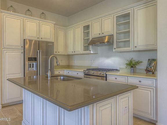 Wonderful opportunity to live in the heart of Carefree! Never lived in, meticulously maintained single level,no steps, energy efficient Keystone home in quiet cul-de-sac. 2 bedrooms plus den, split floorplan. Upgraded tasteful porcelain floor tile throughout, stylish kitchen with quartz countertops, 5 burner gas convection range, all open to a light and bright great room & dining room w/sliding glass doors to covered patio with pavers. Fenced backyard. Attached garage with tankless water heater, epoxy floors. Energy Star certified home. Terrific location! Walk to Carefree Farmer's Market, restaurants & shops. This pristine home is in perfect, move right in condition.