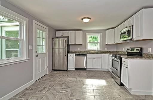 Welcome home to 30 Amesbury Street! Located on a quiet side street near the Shrewsbury line, this fully renovated Cape style home has had every surface touched and is truly move in ready. Updates include NEW siding, NEW roof, NEW heating system, NEW windows throughout, NEW paint throughout and all of the hardwoods have been refinished and are like NEW. There is an updated mud room that leads to the NEW kitchen with NEW custom cabinetry, NEW granite counters, NEW stainless appliances & NEW tile flooring. The fireplaced living room features NEW recessed lighting and the bath is completely NEW with NEW tile flooring, NEW tiled shower, NEW vanity and NEW fixtures. Both bedrooms upstairs have been rehabbed as well & have NEW wall to wall carpeting. A level, private backyard completes this beautifully renovated home! Don't Delay!!