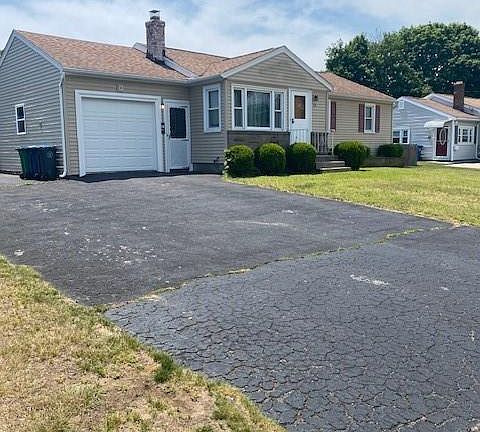 Lovely ranch home with many great qualities! Offering spacious living room with oversized, newer picture window, flows into dining area, which is open to applianced kitchen, with high quality, period cabinets, spacious lighted pantry. 3 generous bedrooms, one currently being used as den, full bath with deep linen closet, and additional shelved closet in hallway, Hardwoods under carpeting in bedrooms and living room. Lower level is partially finished and brings you back to the great times of yesteryear with knotty pine paneling, and dry bar. Nicely sized yard perfect for outdoor fun. Screened in porch great place for relaxing or entertaining. Newer roof, (1 layer), vinyl sided, newer replacement windows, which are oversized for lots of natural light thruout the home. Hot water tank less then 1 year. 1 car attached garage with garage door opener, offers lots of storage. Homeowner has lived here for almost 50 years, and there are many handmade cabinets, nooks, shelving, storage etc., which is a reflection of homeowners' ingenuity, and "do it yourself" talent! While this home does need some updates, a little sweat equity will go a long way in making this lovely home a perfect home for you. Wonderful location close to lots of amenities, including bus line, shopping, dining, highway, swimming, schools. 20 north to providence or south to beachs!
