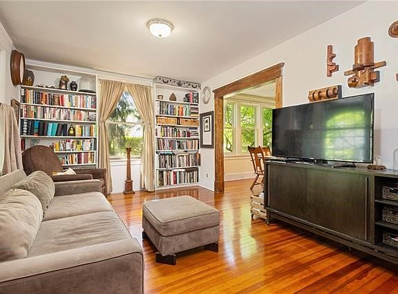 This beautiful Hudson Valley Arts and Crafts Bungalow is just 37 minutes off-peak by car from mid-town, and owned by world renown photographer Jefferson Hayman. Located in South Orangetown School District & sitting on a cul de sac with Revolutionary War monument, this historic gem features rare southern pine floors & hardwood throughout, original stained-glass windows, 3-season front porch with craftsman built-ins and original glass entirely intact. Low taxes! Sprawling back yard enclosed by local shrubs & mature trees. The partially finished basement was artist framing studio & detached insulated garage housed wood shop. Easy walk to NYC Coach Bus, restaurants, library, historical sites, 1/2 mile to shopping center. Square footage does not include basement. Create your own next chapter here!