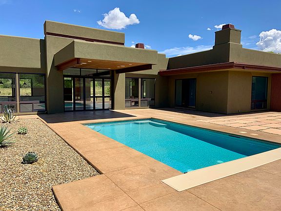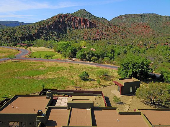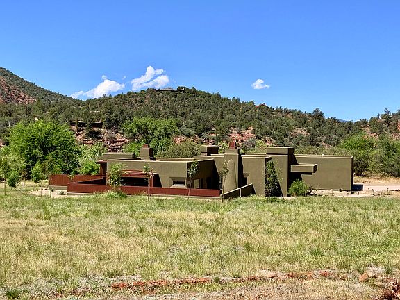 Your own private Sedona spa. New custom home in the private enclave of Cross Creek Ranch. This modern Santa Fe beauty features a spacious master bedroom, bath and walk in closet. Two guest suites with full baths and private patios, perfect for entertaining guests. The clean and calm modern design along with the pool give this home a private spa retreat feel. There is also a detached studio/guest house with a half bath. 5000 sq ft under roof. Custom designed gourmet kitchen, fully wired media/theater room, private master bedroom courtyard, huge rear courtyard with pool and gas fire pit. Situated on a large 2.39 ac corner lot that is flood irrigated, right across the street from Oak Creek. The red rock views from this home instill a sense of peace and tranquility.