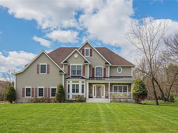 Graciously situated on a glorious lot, an executive subdivision Deer Crossing IV, you will find the elegant Wilshire Model Home first time on market!. This 3400+ sf colonial embraces the sunshine that radiates throughout the many custom windows this home boasts. Upon entering the 2 story foyer with sweeping staircase the 1st floor plan offers a perfectly placed office/library, a spacious kitchen with custom trimmed cabinetry, expansive granite counters including an over-sized island. A perfect flow into a 2 story great room, picture perfect wall of windows and a cultured stone fireplace with limestone hearth. Retreat to a 2nd floor; a grand Master Ensuite with a huge Master Bath and a sitting room with gas fireplace to read or romance by. Three additional nicely sized bedrooms and 1 full main bath. Venture out to your backyard oasis, a 5.4 acre subdividable level, phenomenal property! A 20x40 ft in ground pool with pool house surrounded by the natural beauty the perennial landscaping reveals.Located 15 minutes to the Historic Village of Warwick, there is something for every season, breweries, wineries, local farm shopping, golfing, skiing and the Appalachian Trail perfect for hiking tours!