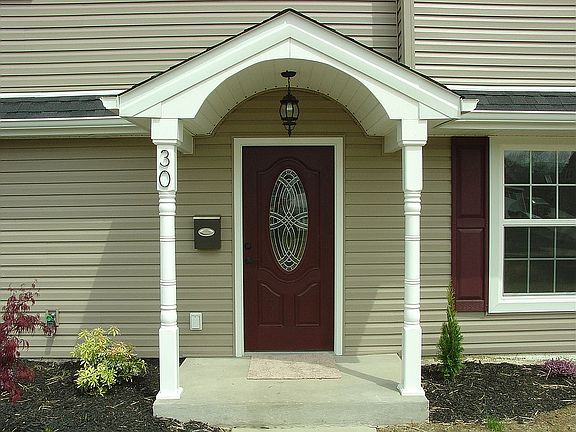 Gorgeous is the best word to describe this home. Starting from the outside with plenty of curb appeal with new roof, new siding, new windows, new driveway, new landscaping, recessed soffit lighting and a portico to cover the new fiber glass door with leaded glass insert. When you enter the home you are greeted by a comfortable open floor plan with living room, kitchen and formal dining room all finished with a rich dark hickory hand scraped laminate flooring. The dining room boasts a vaulted ceiling with accent lighting and shadow boxes and chair railing on the walls and an elegant French double door to the back yard. The kitchen is completely new from top to bottom with granite counter tops, stainless steel appliances, honey maple cabinets, glass mosaic back splash, pendant lighting, garbage disposal, and a breakfast bar over into the D/R. The living room has two French double doors leading out to the rear concrete patio, recessed lighting and electric and cable for a flat screen T. V. . Both bathrooms are all new with large ceramic tiles, accent tile strips, new fixtures and special L.E.D. lighting. Second floor is comprised of 2 very comfortable bedrooms, one full bathroom and a laundry closet for convenience. Fresh neutral paint and carpets though out. All new interior doors, Central air and electric heat pump (14 Seer). The entire house is hard wired with (Cat. 5) for internet. All new plumbing with PVC and PEX.