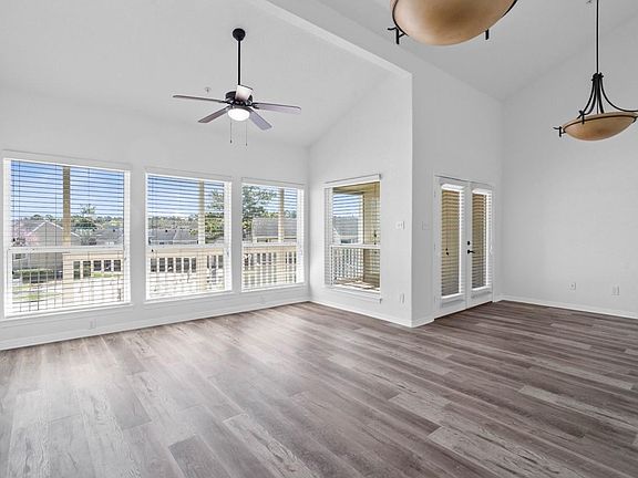 Located within the gated April Sound community on Lake Conroe, this stunning 3-bedroom, 2-bath upper-level townhome offers both comfort and resort-style living. This desirable corner unit has been completely updated, featuring brand-new flooring throughout, fresh paint, and modern fixtures. The kitchen includes custom cabinetry, granite countertops, and double-paned windows with 2-inch blinds for energy efficiency and style. High ceilings add a spacious feel, while the open layout enhances natural light. Enjoy two designated parking spaces and easy access to the community pool, just steps away from your back patio. The property is also within walking distance to the lake and the April Sound Country Club. Join the Country Club (optional upgrade) for access to golf, tennis courts, additional swimming pools, a fitness center, dining options, and more.