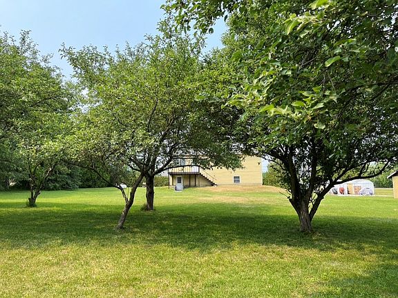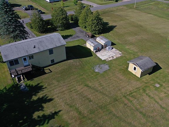 Beautiful double lot on a dead end road! 1.7 acres with hedges for privacy, double entrance, paved driveway. Nice layout with open living/dining room. Door from kitchen opens to back balcony. 3 bedrooms and full bath on main level with 4th bedroom/office, half bath, laundry room, den and bonus room in walk out basement! 2 Storage sheds and a single car garage! All appliances included.