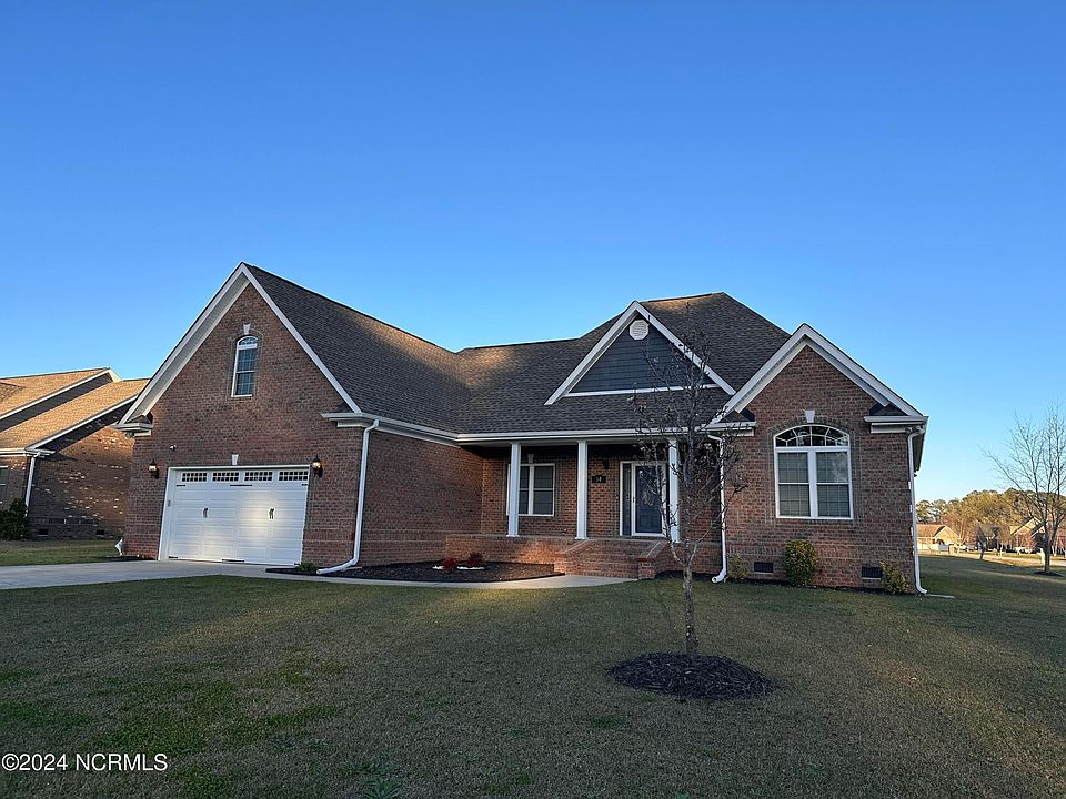 Looking for a move-in ready house outside the city limits? Take a look at this 'like-new' traditional brick home in the quiet Stone Cove neighborhood. This property is well-maintained, featuring an open floor plan, hardwood floors, NEW CARPET, tray and cathedral ceilings, granite countertops, and custom wood cabinets. The kitchen is equipped with Frigidaire Gallery Appliances, including a convection oven and a handy bottom drawer freezer. This home is a practical choice with underground utilities, a fenced backyard, and a split house plan for added privacy. Additionally, for extra space, there's a bonus room with a closet. Don't miss out on the chance to call this home - a comfortable and stylish place that greets you warmly every time you walk in. Your new beginning could start here!