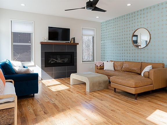 Newer construction home features a primary suite on the main level and two bedrooms with a play area/loft on the second floor. Downstairs includes a fourth bedroom suite and a media/gym/studio area. Wonderful natural light from the southern facing windows. Excellent floor plan and flow. Green built home keeps the utility costs low and the interior cozy. Close to everything in West Asheville, River Arts and Downtown.