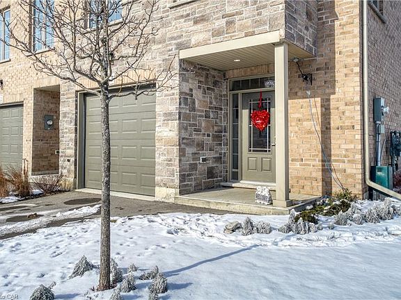 Fresh. Bright. Modern. This 3 story townhome features an all brick/stone exterior and is located conveniently near the Trans Canada Trail, the Grand River, and Downtown Paris. Walk in to this stunning home to the lower level with a large foyer and access to the garage. Also on this level is a bright rec room or bedroom with 3 pc bathroom and walkout to your backyard. Head up to the second level where you will be wowed! The open concept, 9 foot ceilings and large windows wash this level in natural sunlight. The spacious kitchen boasts stainless steel appliances, a huge center island perfect for casual dinners or meal preparation and a walkout to your deck perfect for outdoor grilling or just relaxing with your morning coffee. The spacious dining area and living room is the perfect place to entertain small to large gatherings.... this home is stunning! The third level offers a fantastic master bedroom with large closet and an en-suite bathroom. Another good sized bedroom, full bathroom and laundry room complete the upper level. This home is a must see, do not miss this opportunity to live life by the Grand in the prettiest little town in Ontario!
