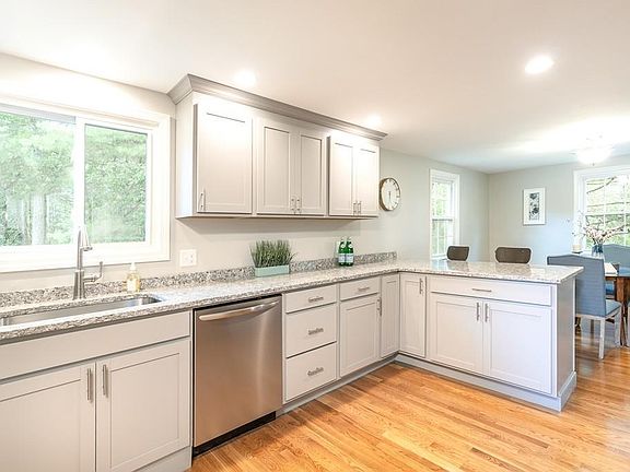 DREAMING of a gorgeous modern kitchen in a home with an open floor plan that is SPACIOUS, big and BRIGHT! A "WOW factor" kitchen runs along the back of the house and spans the space to the dining area. L-shape peninsula separates the space and adds seating. Pantry wall adds storage cabinets and keeps the refrigerator tucked out of the way. IMAGINE the possibilities w/2 living spaces, 2nd liv rm sits off kitchen w/fireplace, great SPACE for entertaining. Recessed throughout and sparkling hardwood on both levels. The 1st flr bath has updated vanity/granite, 3/4 shower and stackable laundry hook-ups, perfect spot for laundry day! Upstairs you'll find 4 LARGE corner bedrooms w/double closets (master is walk-in), a beautiful open stairwell that adds light, open hallway at the top and updated full bath with tiled tub/shower combo, large vanity, and tile. It doesn't get much better than this! Situated in a private S. Tewksbury neighborhood on an acre of land and minutes to Rt. 93.