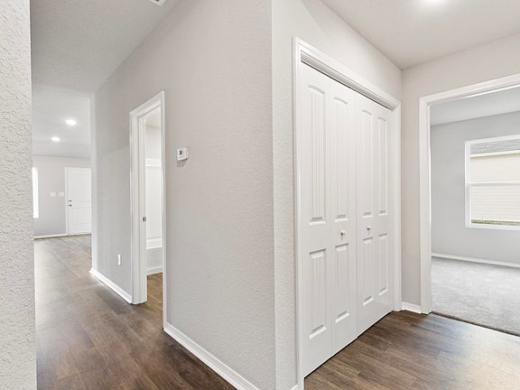 The Carlie II plan is a sweet home with a modern look. The clever offset door saves space and looks attractive. A hallway welcomes you in to a Living Room then Dining and Kitchen. Bedrooms 2 and 3 are set to the front of the home, and the Master Bedroom to the rear for added privacy. Thoughtful upgrades included with this home: plumbing faucet upgrade 2, door bell, crown on Kitchen cabinets, Luxury Vinyl Plank flooring in wet areas and Living Room and adjacent hallways, raised ceilings in Living Areas per municipal requirements, Cheyenne style interior doors, baseboards level 2, 25in wide attic stairs, LED disk lights in Kitchen, full sod, stainless steel appliance package. THIS HOME IS SCHEDULED TO BE COMPLETE IN EARLY FEBRUARY.