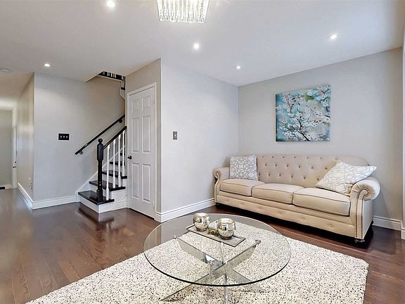 Please See Virtual Tour!!! Absolutely Stunning Bright &Spacious Town Home W/Thousands Spent On Upgrades!. Approx.1789 Sqft Of Luxury! Hardwood Flooring Thru-Out,Beautiful Dark Wood Stairs, California Shutters Thruout, Upgraded Island Kitchen Featuring Quartz Countertop, Custom Backsplash &S/S Appliances, Spacious Living Room &Dining Room Combination W/Walk Out To Balcony Great For Entertaining. Finished Bsmt Can Be Used As Rec Room Or Private Office.
