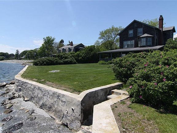 c.1886-87 The "Folly House" is a classic period detailed shorefront shingled cottage with modern day amenities. Located on the water's edge of the Jamestown Harbor, this home offers a wonderful wrap around porch on the waterside providing spectacular views of the Narragansett Bay, Newport Bridge, and all the wonderful sailing activities. As afternoon comes around enjoy the summer breezes off the water from the Southeast. The home offers a wonderful kitchen overlooking formal dining area out to the bay. Enjoy a cozy fire in the living room, or relax in the family room. An en suite bedroom on the first floor is ideal for those guest needing easy accessibility. The 2nd floor with east facing master bedroom, captures beautiful sunrises, as well as spectacular full moon rises over the lights of the bridge. Additional guest bedrooms and baths, are located on both the 2nd and 3rd floors. A detached 2 car garage, has additional guest studio space above with separate full bath. Located within a 1/2 miles of the village, restaurants and marinas this convenient location is ideal for a summer home or year round. Mooring hardware, tackle, and rights convey with the property. Recent major renovations were designed and supervised by the architectural firm of Estes/Twombley. Additional work has been done by current owners, and completed by Newport Housewrights. Jamestown, the Jewel of Narragansett Bay, is an island paradise with easy access to Newport, Providence, Boston or NYC.