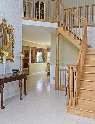 This 4 bedroom, 3.1 bath Colonial in the sought after River Oaks Neighborhood was recently refreshed with some painting bringing a whole new look upon entering the elegant 2-story foyer. The eat-in Kitchen open to Fam. Rm w/fireplace and sliders drenching the space w/sunlight to a 2-tiered patio w/hot tub overlooks the private, lush yard w/space for a pool. Off the Kit are formal Dining and Living Rms w/mahogany flrs and dramatic ceilings showcasing this space. The 1st flr. also has an office/poss. bedroom, powder rm, laundry rm and access from the garage. The 2nd flr. is where the opulent master suite is w/his&her closets and luxurious private bath. Finishing this flr is 3 bedrooms, bath/linen closets. Spacious lower level w/wet bar, kitchenette, full bath.