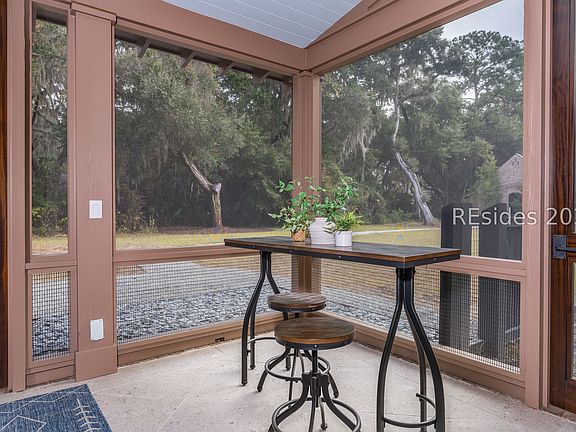Surrounded by majestic Live Oaks and overlooking the 12th fairway of Old Tabby Links, this property offers a beautifully finished guest cottage and an elegant retreat. Take advantage of the cottage in place and build your dream home on this expansive 1.96 acre lot. Both structures in place feature brick exteriors, custom mahogany doors, concrete tile roofs, and premium oak flooring. Recent enhancements include a fenced dog run and a screened porch. The two bedroom guest cottage offers baths finished in cream marfil and travertine, charming bedroom alcoves, a well equipped living area with under counter refrigerator and freezer, a brick accent wall, and a full size washer and dryer. The Retreat provides a refined escape with exquisite paneling and trim, Red Dragon granite accents, a wet bar, and a half bath. With space for a flat screen TV above the fireplace, it is an ideal place to relax and unwind.