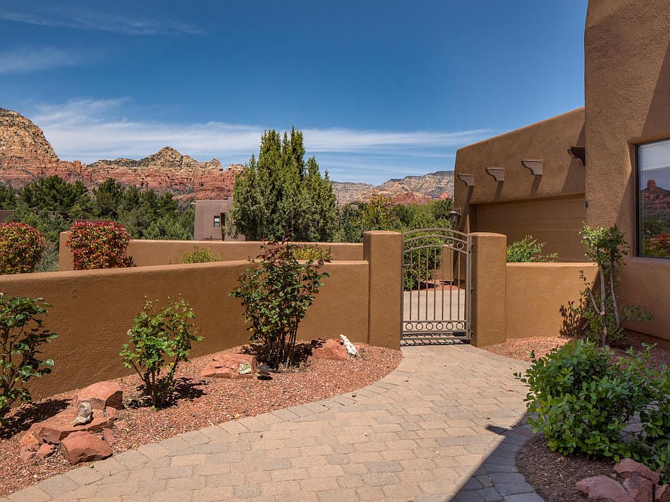 WARNING: Be prepared to fall in LOVE with this home! Every window of this Southwest Contemporary Beauty frames Sedona's most beloved red rock monuments. One level living in a private gated enclave of 9 homes, yet just steps from the restaurants and amenities of West Sedona. Private Master opens to patio, split bedrooms, open Great Room plan with high ceilings, gas fireplace, large Kitchen & 2 view patios. Kitchen has granite counters, stainless steel appliances, gas stove and pantry. Bedroom 2 has adjoining bath, currently being used as office. This flexible floor plan offers areas for formal as well as casual dining plus office nook/sitting area. The Laundry is convenient to the Master Suite. The over-sized 2 Car Garage has room for a workshop or storage area. This is a ''MUST SEE'' home