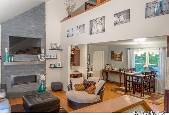 Black Mountain home in a perfect location! Located just above the golf course, on a double lot and only a few minutes to historic downtown. Enter into a fabulous open floor plan with cathedral ceilings and then into 3-season room with a treehouse feel...perfect for entertaining! Ethanol fireplace provides warmth and ambiance. Upstairs you'll find a playroom/loft/office, two bedrooms and full bath. Spread out in the basement that provides a kitchenette, living area, bonus room, full bath and a screened in porch! Private mountain setting, with a gorgeous stone fire pit and outdoor seating area. Easy to show - schedule a showing today!