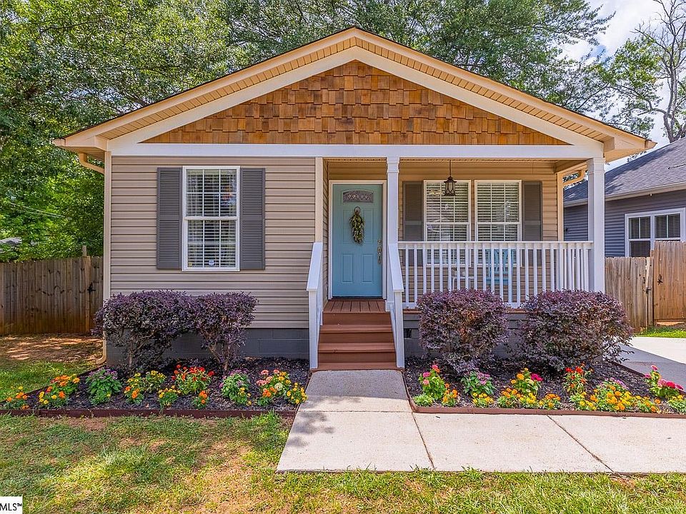 Adorable fully renovated bungalow 1.5 miles from downtown and 3 minutes from Cleveland Park and the Swamp Rabbit Trail. New Roof, new refresh on hardwoods, new carpet, new paint from ceiling to baseboards, HVAC 2019, Front load washer and dryer (2019) included. Walk out your kitchen door to go down Trex composite stairs to a new paver path and patio with private fully fenced yard. Home is on corner lot which allows ample parking on Gandy street in addition to your 2 car driveway. The home has gutters with leaf guards. Tons of storage in very large crawl space - great for holiday decorations, suitcases, etc. Come see the home! It's so cute and roomy inside. Square feet is 1,094.