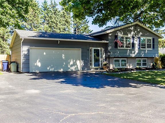 Remarkable 4 bedroom split level home in East Irondequoit! This 2,075 sqft home has been updated all throughout! The pristine kitchen features all stainless steel appliances and quartz countertops! The family room and formal dining area are large, inviting and streaming with ample natural light! The fully updated bathrooms feature granite countertops and immaculate new vanities! Three large bedrooms! The lower level houses a fourth bedroom and 2nd full bath and sizable living space that could also serve as a rec area! The exterior boasts a blacktop doublewide driveway and attached 2 car garage. In back a large private fully fenced yard featuring a brand new in-ground pool and shed for additional storage space! The perfect space for entertaining!