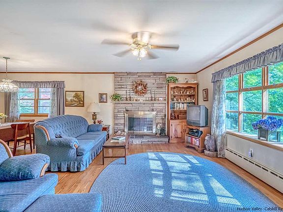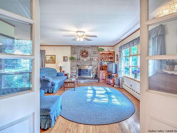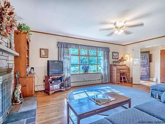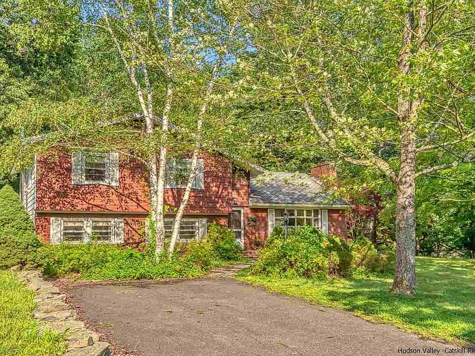 Just minutes from Route 28 don't miss this ideal split level with tons of potential. Situated on a 1 acre, corner lot. This property features stonewalls, landscaping, garden shed and a two car detached garage with two additional parking spaces. Quiet country dead end road with no through traffic. Inside has beautiful hardwood floors throughout, a large den with parquet flooring, custom built in shelving and wood stove. Living room has a stone fireplace and a big bay window. Updated oil tank in 2019 and cast iron baseboard heating. All mechanicals are working great. The kitchen and bathrooms need some updating. Property has recently been approved by the town of Olive for municipal sewer.