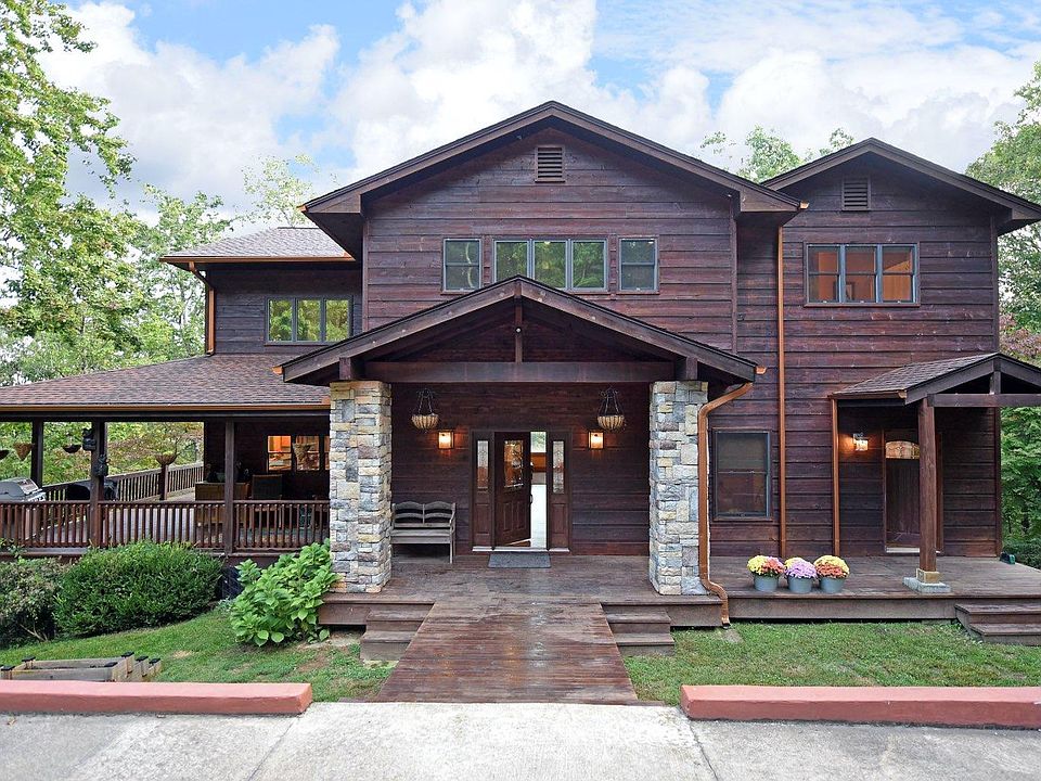 A one of a kind house with a long range view of Brasstown Bald to match. Every room of this custom built home is absolutely stunning. The large great room has a wall of windows to showcase the view, huge cathedral ceilings with tongue and groove, and gas fireplace. The kitchen has a large island with seating and beautiful countertops. Master bedroom on the main with the same view as the great room with a private deck to step out on and enjoy the sunrise. Laundry is also on the main floor. The upstairs features two additional bedrooms and a full bath. The basement is absolutely stunning and is custom all the way. The buffalo and Indian head nickel countertop edging with the true railroad spike handles are unbelievable. There is also an additional sleeping area in the basement with a pull down king size murphy bed. The outdoor space will not disappoint with decks around 3/4 of the house, a grill on the top deck, and plenty of room for outdoor furniture. The lower level features a stamped concrete patio with a fire pit, additional grill with an outdoor sink and countertop space with power outlets. Three car detached garage, fenced yard with commercial grade electronic gate, 3.64 acres, and frontage on a community pond.