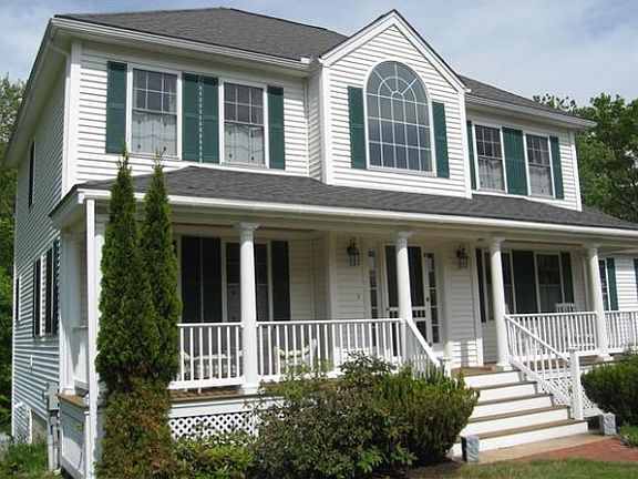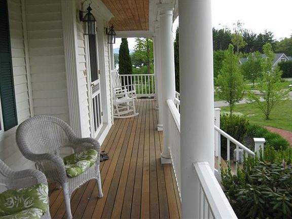This lovely custom-built Colonial was painstakingly designed to accommodate sunny rooms and a two-story foyer to bring the outside in. With many upgrades, this home offers a 50' deck and 38' farmer's porch with upgraded round columns to enjoy the views of a pristine neighborhood of eight homes on a cul-de-sac overlooking Paugus Bay. Rights to a beach at the end of the street offers a cooling-off spot at your leisure. With magnificent sun provided by a palladium window when entering the foyer, you will see a formal dining room with wainscoting and crown molding, separated from the kitchen by a half wall and round columns. Kitchen and dining room boast hardwood floors and french doors from the foyer and double doors out to the deck. Marble counter tops, stainless steel appliances, under-cabinet and recessed lighting, 7 foot island off a 26'x16' living room with over sized palladium window with lake views and gas fireplace. Private den or library off the kitchen also has crown molding