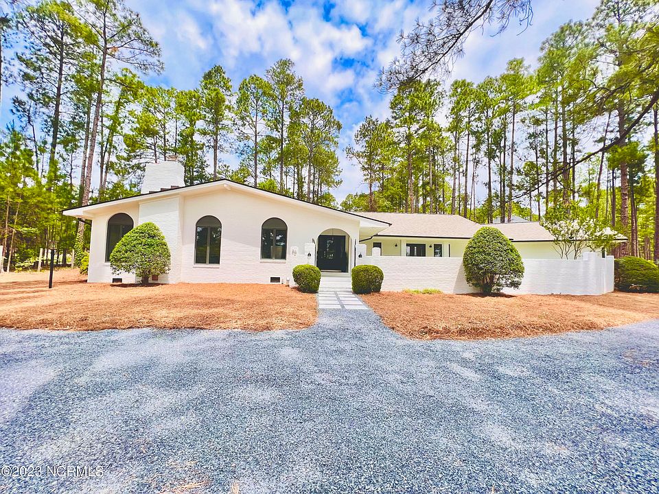 Enjoy the privacy of this Home situated on over a half-acre golf course lot, located a mere ten minutes from Pinehurst! This one level turnkey ranch, fully renovated, left no detail untouched. From the new pull through blue stone driveway, entering a private landscaped courtyard, the foyer welcomes you with real solid oak ¾ inch hardwood floors flowing into the dedicated office w/ built-in bookshelves, to a large bright living room w/ new gas fire logs, the adjacent dining room includes a built-in sideboard topped with quartz countertop, with complimenting curved sides, completed with a wine refrigerator! Off the dining, the extra-large tiled entertainer's kitchen, boasts quartz countertops and a 9ft+ island with seating for five! This new kitchen comes with 20 wood soft close dove tailed cabinets, all stainless-steel GE appliances, including, a full depth refrigerator, dishwasher with third rack & five burners (griddle included!) Wi-Fi compatible gas range with self-cleaning air fryer convection oven (220V plug also in place) with Kingston Brass pot filler for added convenience. A built-in butler's pantry includes extra cabinets with two sets of deep double drawers and built-in upper shelving. The laundry room is centrally located, with folding area, and new Washer and Dryer included! Enjoy a morning coffee or a quiet read on the covered brick porch off the kitchen with new stained beadboard ceiling and a fan to keep you cool. Continuing down the wide hallways trimmed out with crown molding and tall baseboards, you enter the resting areas. A large primary bedroom, with his and her closets, has French doors leading to the sweeping veranda style porch into the private courtyard, and a new primary bathroom with dual vanities, private toilet room, and 6ft tiled shower, that includes both high-pressure shower and rainfall water-heads, hand sprayer, and bench seating to round out the primary suite. Two additional large bedrooms with walk-in closets share a tiled bathroom with tiled shower / tub surround. Exiting to the oversized double car garage, you find ample space and double doors for golf cart storage. Other new upgrades include: A new A.O. Smith Signature 50-Gallon water heater w/ digital interface to easily select water temperature and is WIFI compatible, Two new electrical panels, plumbing stubbed out for garage sink, New Roof, New Gutters, Upgraded 8mil white crawlspace barrier, all new crawlspace insulation, New 2.5 Ton 14 SEER Goodman heat pump system, Completely new septic system installed, with new design leaving ample room for backyard activities or future swimming pool. Short walk to the adjacent Foxfire Village Park and Pool areas or cart over to the Foxfire Golf Club for a round of golf or quick bite at the Clubhouse. Don't miss this turnkey, character filled, quality home located in Moore County, a recognized top micropolitan area!