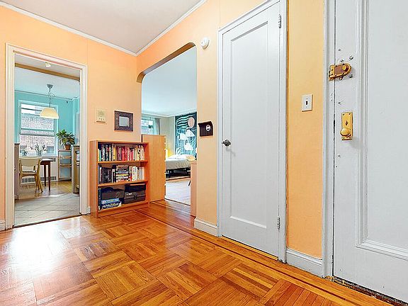 All showings are by appointment only. *HIGH FLOOR Spacious Studio!* One of the largest studio co-ops you’re likely to find in Fort George is just around the corner from Fort Tryon Park. This upper level unit with its lovely floor plan is at 30 Bogardus Place, the notable Art Deco building designed by Charles Kreymborg and listed in NoMa’s Art Deco Project field study. A large foyer with extra closet space acts as a central hub to this sunny and charming apartment with its inlaid parquet floors, 9-foot ceilings and wide crown molding. Through an arched entry to the right is the main living and sleeping area. This huge space can accommodate a bedroom, living room and home office and could easily be sectioned with a standing room divider. Rear-facing windows offer views of Ft. Tryon Park in the distance. The dual-entry kitchen is a revelation, with maple cabinetry, a custom tile backsplash, and full-sized appliances. There is also a super cute dining nook featuring its own oversized window. A hallway, with a third closet, leads from the foyer to the bathroom. This meticulously maintained building features a renovated elevator, newly installed windows, laundry facilities, a complimentary storage locker for each unit, and a bike room. You’ll be close to bars, bakeries, bodegas, and local restaurants, as well as the entrance to Fort Tryon Park with its Heather Garden, outdoor yoga classes, and Hudson River walking paths. In addition, a nearby farmers market is open on Saturday mornings. The A and 1 trains are just a few blocks away. Monthly assessment of $156.19 for capital rebuild.