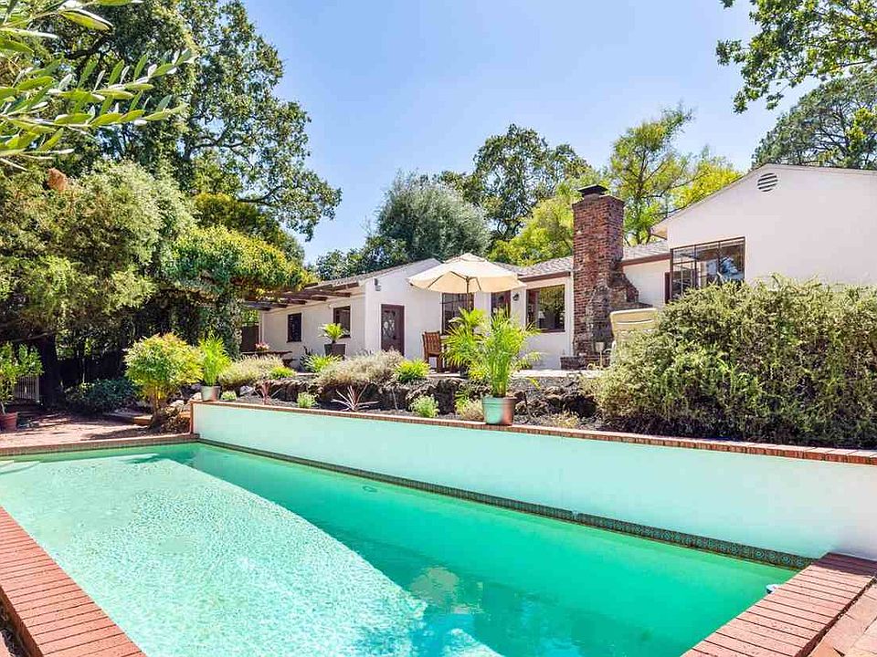 Charming light-filled bungalow with Carmel ambience tucked at the end of a cul-de-sac in Walnut Creek's sought after Saranap neighborhood! This single story home emanates warmth, charm, and character with its rich hardwoods, exposed wood-beam ceilings, and inviting indoor/outdoor entertaining spaces! The detached bonus room is perfect for a home office, exercise studio, or rumpus/TV room. A sun soaked private setting features a picturesque backdrop of mature trees, lush and colorful gardens, inviting swimming pool, covered pergola, and spacious brick patio. Other features include rich wood cabinetry & custom built-ins, stone fireplace and hearth, French doors, ample closet space, rich tile finishes, skylights, stainless steel appliances, and much more. There is excellent off-street parking, including a two car garage and large driveway. In addition, the large lot has plenty of room for future home expansion. This gorgeous property offers endless possibilities!