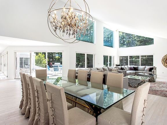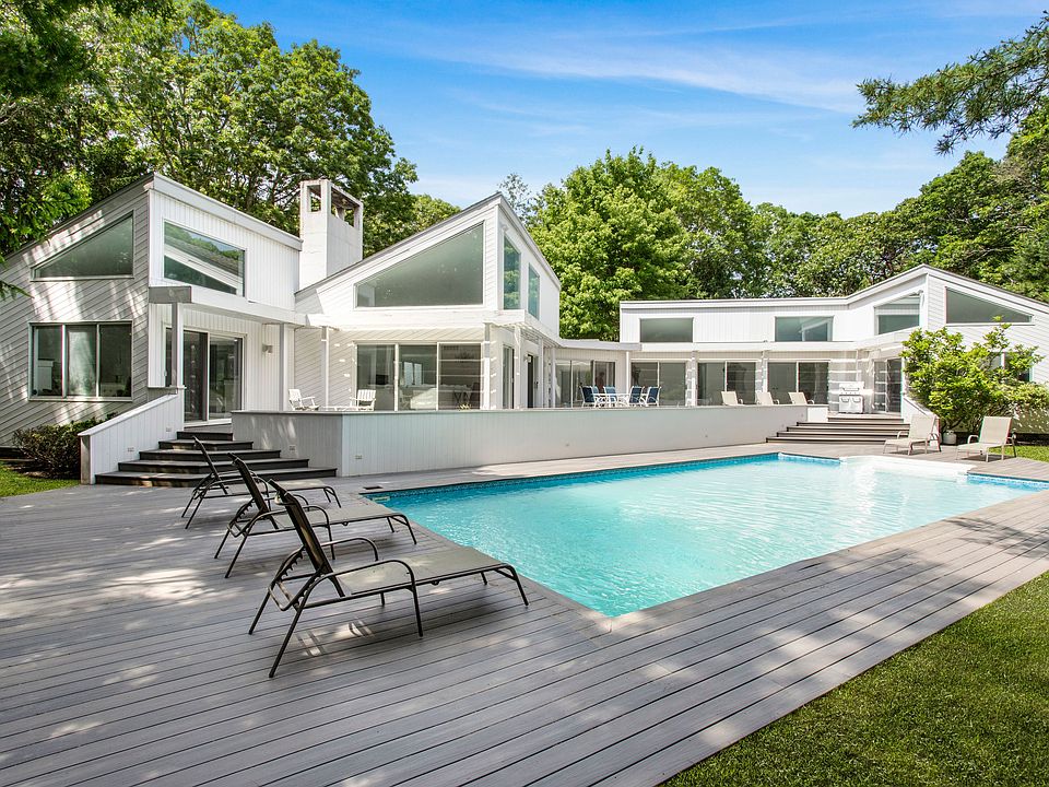 This bright, sunny one-level contemporary features 4 bedrooms and 3.5 baths on an acre in Quogue Village. The central great room has soaring ceilings, a wood-burning fireplace, and plenty of space for entertaining. Off the great room is a junior master suite with sliding glass doors out to the deck/pool area. At the opposite end of the house is the spacious owner's suite, also with glass doors to the deck, and there are two guest rooms and 1.5 baths in between. Outside, two levels of expansive decking surround the 20' x 40' in-ground pool. Complete with an attached 2+ car garage, this home is ideal for summer getaways or year-round living. Great rental potential, with rights to Quogue Village Beach, only 90 minutes from New York City.