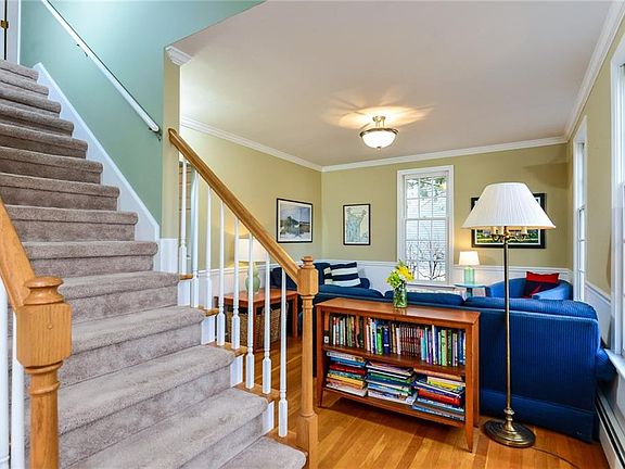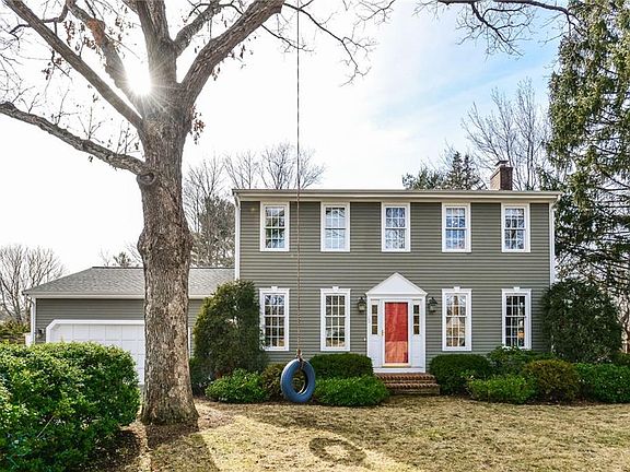 Stunning, bright and sunny on a quiet street. 4 bed, 3 1/2 bath Hampden Meadow colonial. This floor plan offers many possibilities. Kitchen is open to the family room with a beautiful fireplace. Step down from the family room to a large dining room that overlooks the beautiful back yard. Living room, half bath and sitting room finish off the generous first floor. Upstairs boasts a fireplaced master bedroom with master bath, whirlpool tub and stall shower. Laundry room, and 3 additional bedrooms. The finished basement is great for entertaining, has a full bathroom, spaces for and office/bonus bedroom or work areas. 2 car garage, beautiful, fenced, peaceful yard, deck with a firepit and walkable water access on Hundred Acre Cove. Excellent home for growing family and short drive/walk/bike ride to Hampden Meadow and/or Barrington High School.