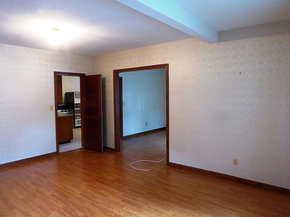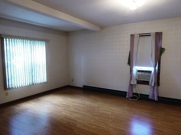 This home is ready for you! Large living room and large dining room with laminate flooring. Kitchen has vinyl flooring, gas stove, refrigerator and door to enclosed porch. Full bathroom with vinyl flooring and walk-in jetted tub and shower combination. First floor laundry room with gas dryer and set sink. 2 bedrooms with hardwood floors, wall scones and closets. Hot water baseboard oil heat with two above ground oil tanks, 100 amp circuit breaker panel and detached garage/building with wood floor and electric garage door opener. Roof 8 years, vinyl sided, most windows are vinyl, gutters, fenced in section of yard and sealed driveway. This home also offers a walk up unfinished attic space and full basement.