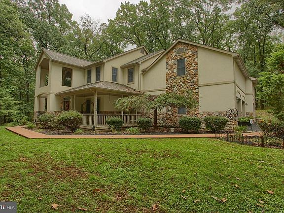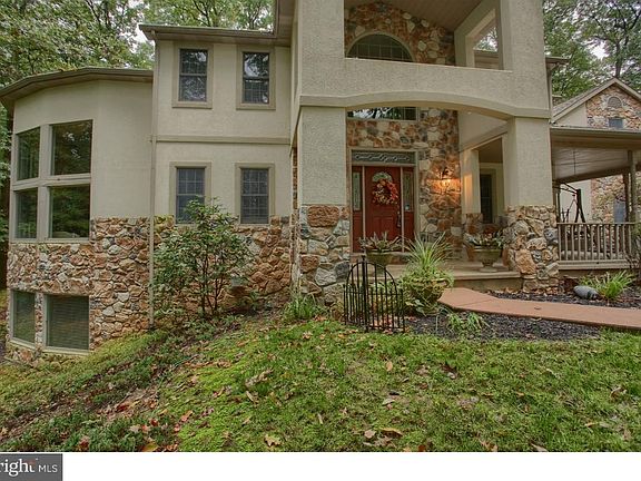 Stunning contemporary on a wooded lot of 5.40 acres in Cocalico school district. This 5 bedroom, 3 full baths and 2 half bath home offers over 6,000 square feet of living space. As you approach the front door, you are already impressed by a two story entry way that sets the tone for the rest of your tour. Inside is a grand entrance with cathedral ceiling, and curved stairway. While looking across the brilliant hardwood floors, there's a set of French doors entering into the formal dining room. The main floor has a dynamic floor plan that is far from cookie-cutter, with all it's architecturally angled hallways and room designs. To the left of the entry is a formal living room divided by pillars, next is a sunken family room that offers lots of wow factors including a two story ceiling, two story authentic stone fireplace, lots of ambiance and a wall of windows to bring the outside in. On this wing, you have a 5th bedroom that is currently being used as an office, with a half bath adjacent. The dining room is spacious enough for your gatherings and has a glass butler door to the kitchen, in addition to the double door entry. The right side of the main floor consists of a separate bar/coffee station, which leads into the impressive open kitchen with an abundance of cabinetry, granite countertops and generous sized island, double ovens, desk area, updated appliances and marble tile floor. Off of the kitchen is a room for whatever you would like, whether a play room or a hobby room. The first floor is complete with another powder room, a three car garage and even a covered patio off of the front and a screened in porch off the back with a full length patio. The second floor consists of 4 bedrooms and 2 full baths. Enter the master en suite by a set of French doors. Your place for relaxation with vaulted/peaked ceilings, a sitting area that has bump out window seats, a walk in closet that is almost impossible to fill, and the bathroom?? a jacuzzi tub, double vanity and
